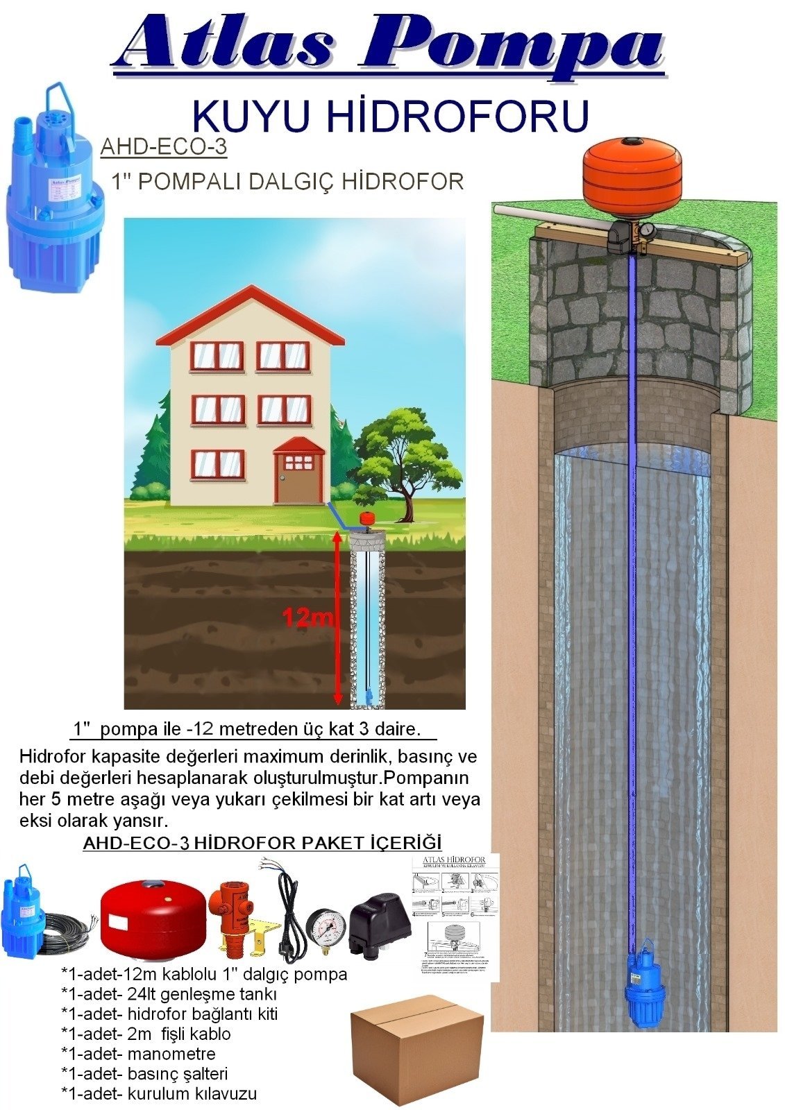 ATLAS HİDROFOR özellikle şebeke suyu olmayan bölgelerde kuyu, sarnıç, sondaj ve depodan