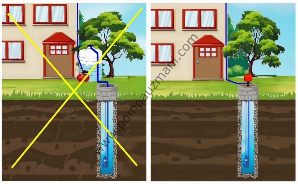Kuyu üstü pompaların maximum çekiş derinliği olan 9 metreden daha derin kuyular