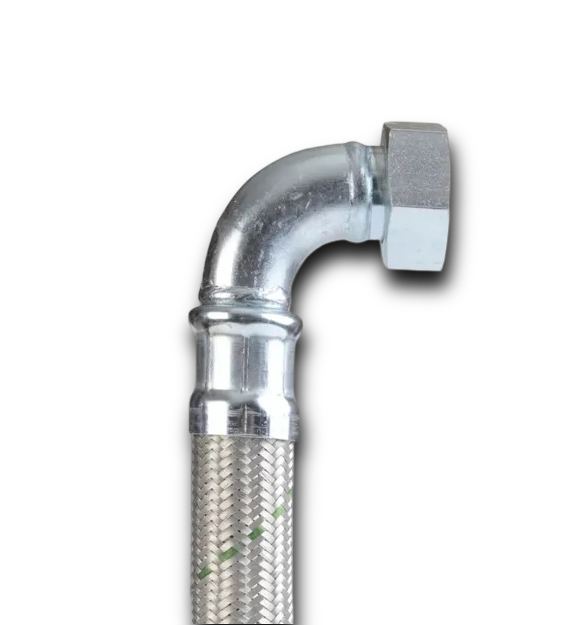 -Fleks hortumun bir tarafı dirsekli tip olup, dirsek tarafı oynar rekorludur, diğer taraf düz tip olup erkek nipel bağlantıya sahiptir.
